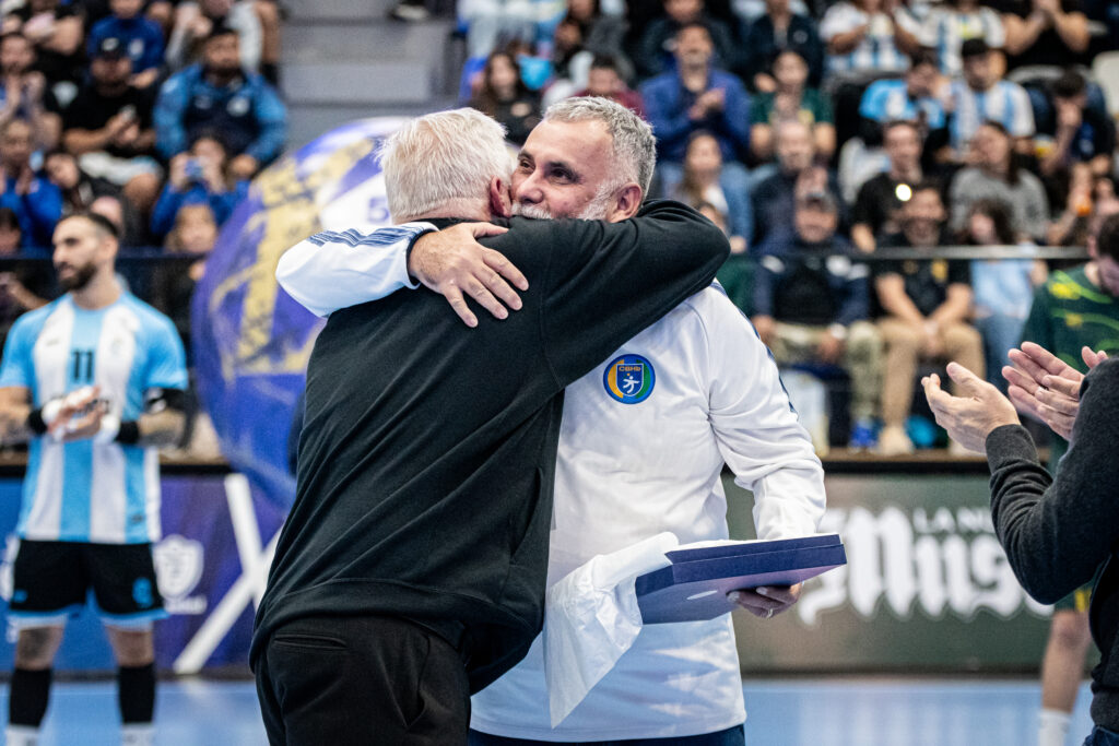 En la previa del partido entre Los Gladiadores y Brasil disputado el jueves, la Confederación Argentina de Handball realizó un reconocimiento a la Selección de Brasil por su histórico 7° puesto en el Mundial 2025, un logro que otorgó al continente una plaza adicional para el próximo Mundial Adulto Masculino.