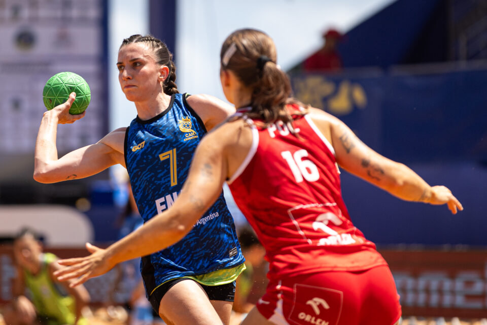 Por la noche, frente a Brasil, las chicas jugaron un excelente primer set, con Valentina Riondini sumando atajadas, la defensa sacando faltas en ataque y efectiva en ataque con Gisella Bonomi -goleadora con 21 tantos- como protagonista para el 17:8. Segundo set que siguió en esa tónica hasta un parcial 17:10 faltando 4 minutos, pero Brasil reaccionó y lo dio vuelta para llevarselo 23:19. En los shoot-out, las locales fallaron menos y se quedaron con la victoria 7:6.